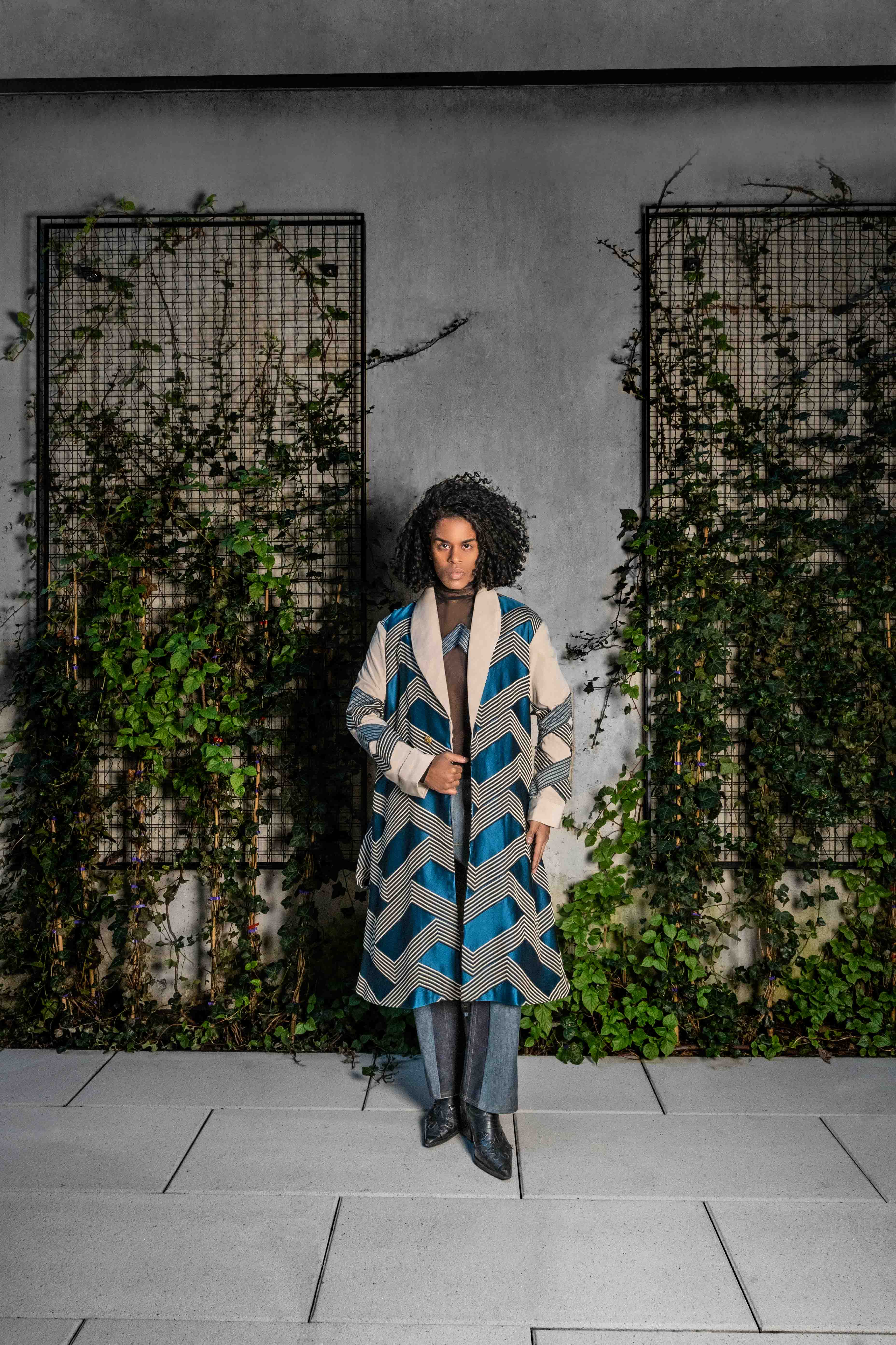 After a two-year hiatus, LLESSUR returns with "Untitled"—a collection born from introspection and a renewed purpose. Crafted from upcycled denim, wool, silk, and cotton blends, each piece weaves a narrative of resilience and inclusivity. Fringe accents and gold-metal embellishments echo stories of those often left unnamed.